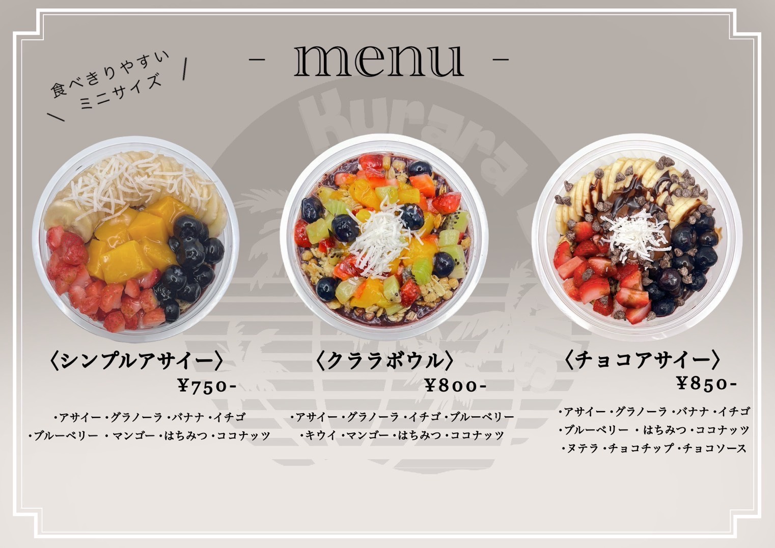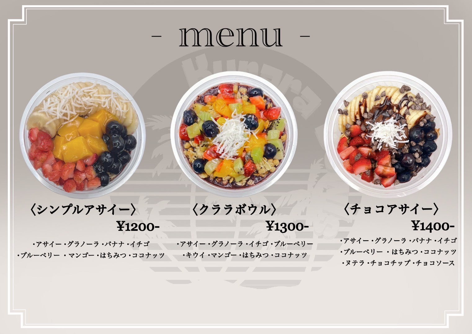 Menu - acai